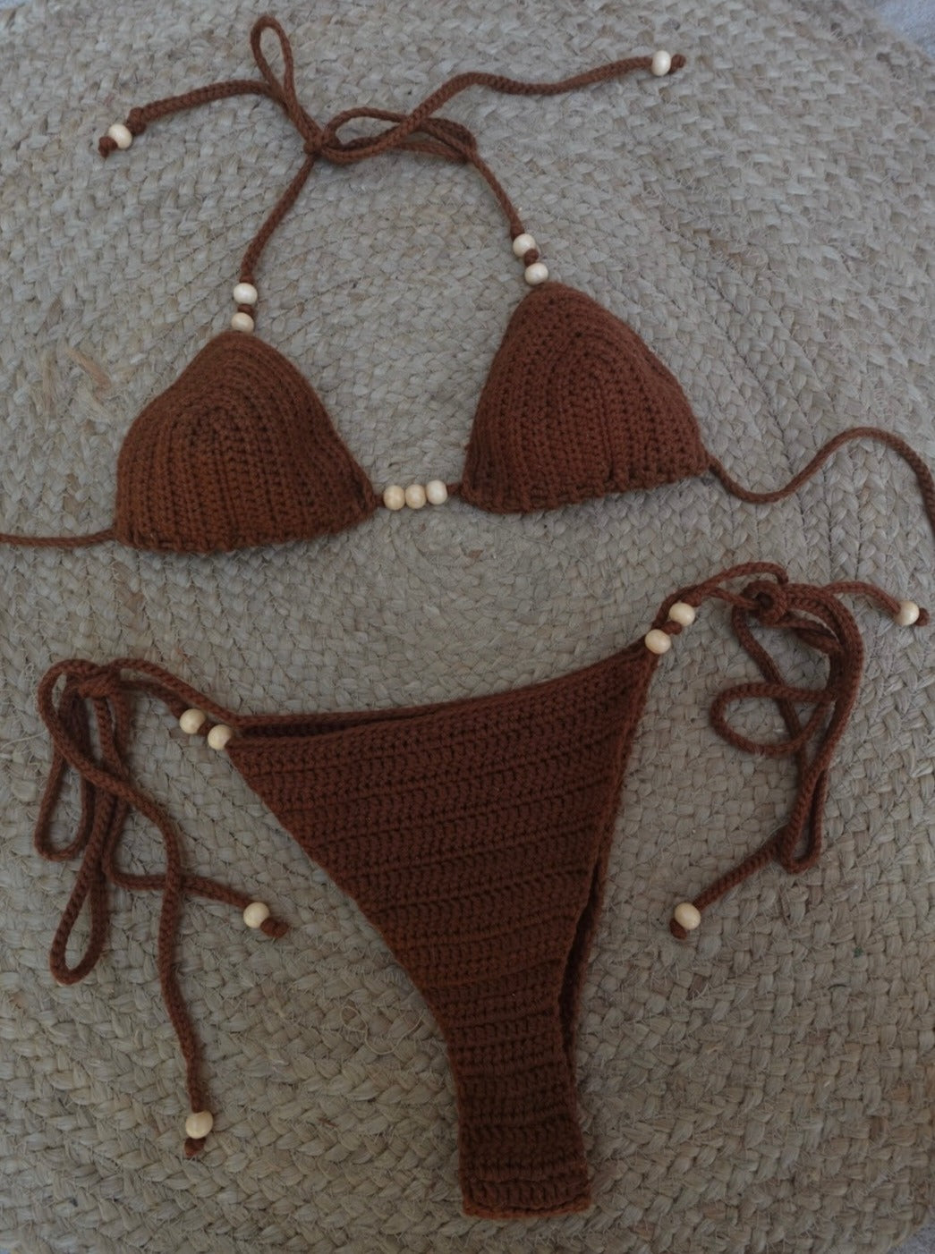 Crocheted with love, our Canela Bottom features a tight double-crochet design in a deep cinnamon brown. Accented with light wooden beads to match our Canela Top, these cheeky bottoms are the perfect choice for those seeking a subtle touch of sensuality and warmth this bikini season.