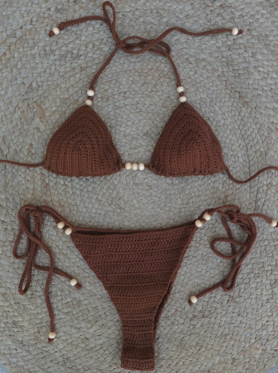 Handmade with care, our Canela Top features a tight half double-crochet design in the classic triangle silhouette. Accented with light wooden beads, the Canela Top is the perfect choice for those seeking a touch of unique style for their beachwear collection.